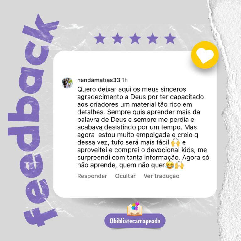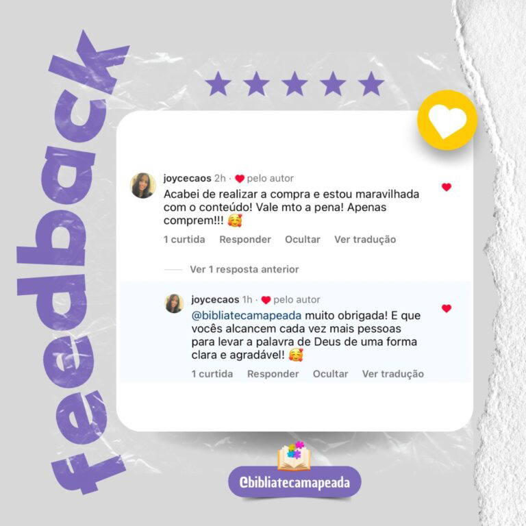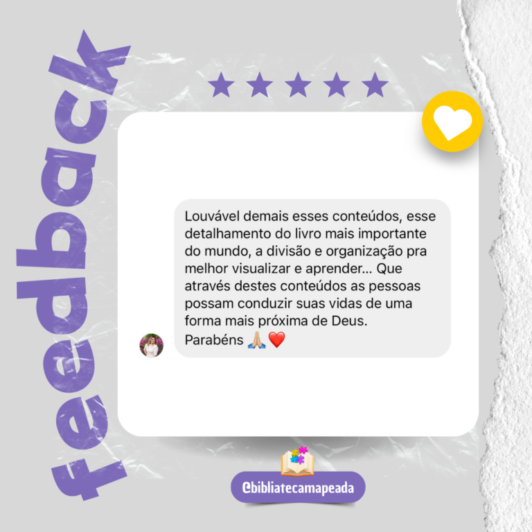 – Mais de 130 páginas de estudo: tudo isso com muitas cores, elementos e imagens que dão vida às histórias e vão te ajudar a absorver muita informação com pouco texto em resumos abrangentes que te fazem alcançar total clareza até sobre os livros mais complexos e te motivam a elevar a qualidade do seu tempo com Deus.